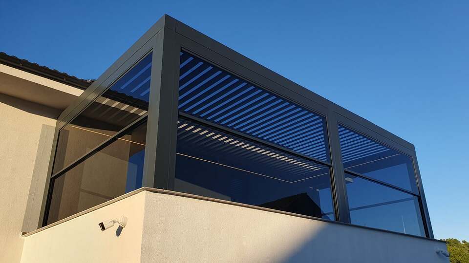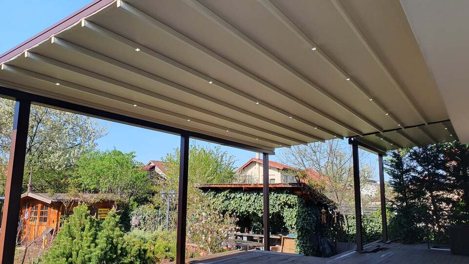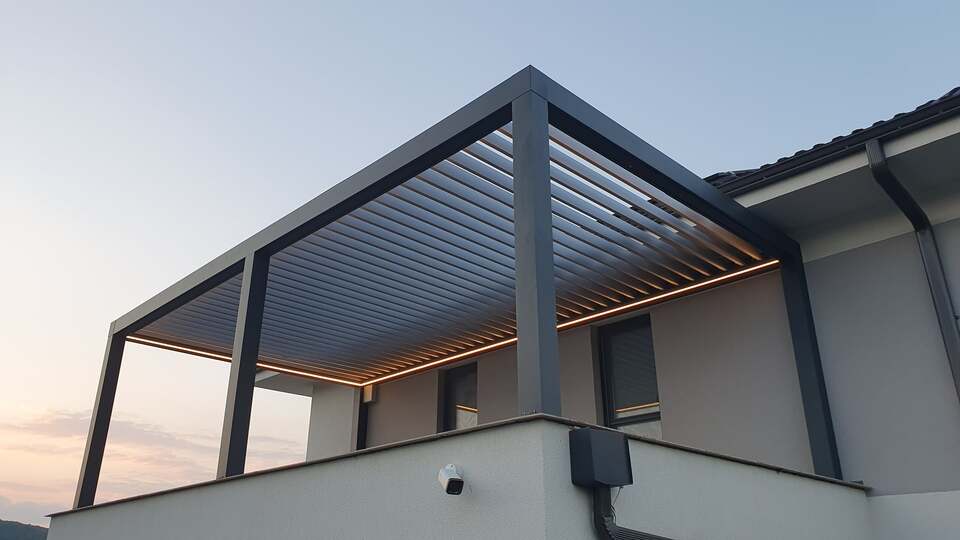 Soluție modernă și elegantă pentru umbrirea terasei dumneavoastră pe tot parcursul anului. Datorită lamelelor sale reglabile, puteți controla lumina și ventilația, astfel încât să puteți ajusta întotdeauna după confort proprie. Cu designul său premium, ridică confortul terasei dumneavoastră la un nou nivel.